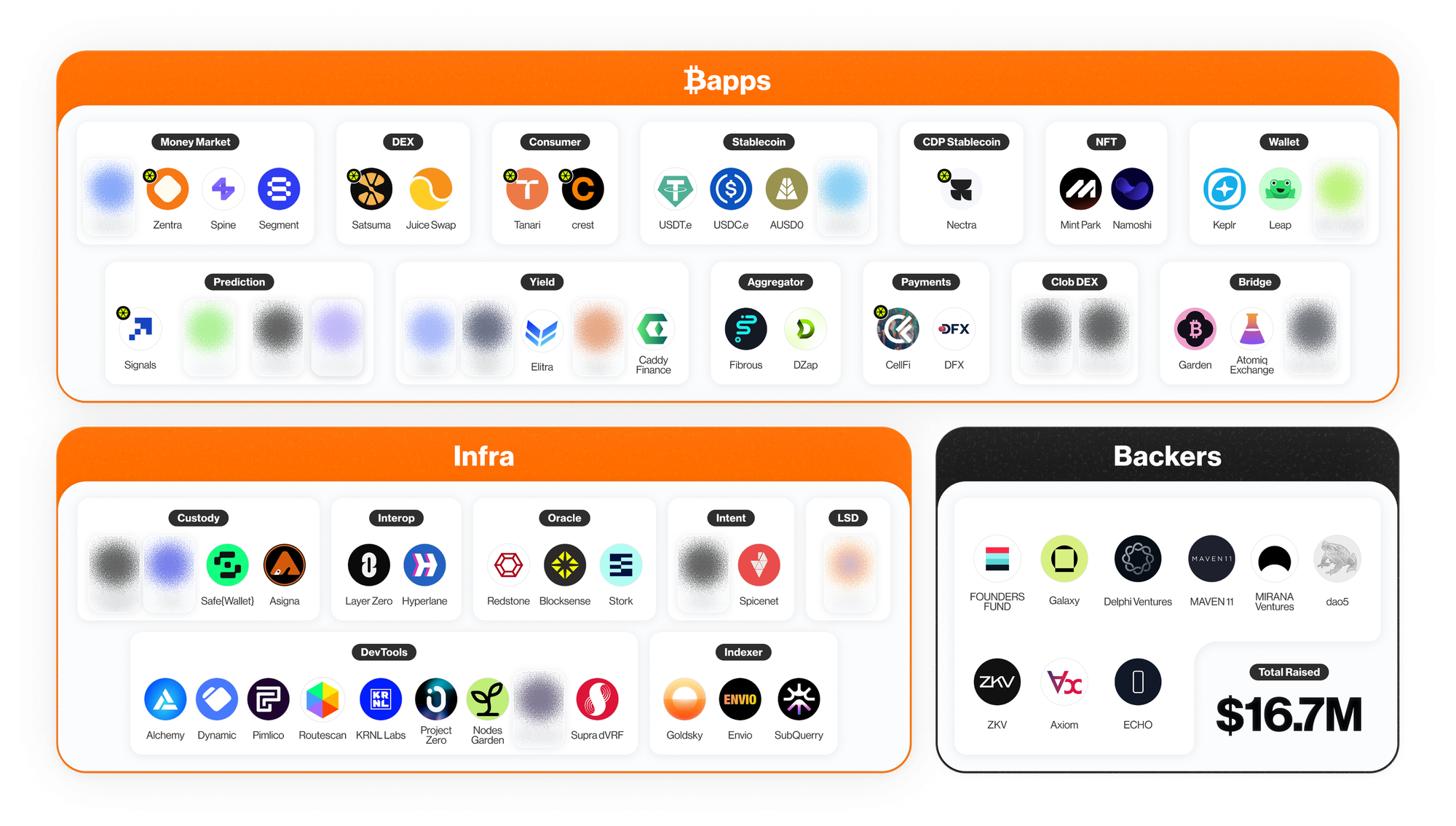 - Unfreeze ₿apps Campaign : An invite-only testnet campaign with 15 ₿apps across different categories (DEXs, money markets, consumer ₿apps, prediction markets, aggregators, NFT marketplaces, and more) stress-tested the ecosystem and collected valuable user feedback. Over 26,200 users completed tasks across all projects, minting the ₿apper Badge NFT.