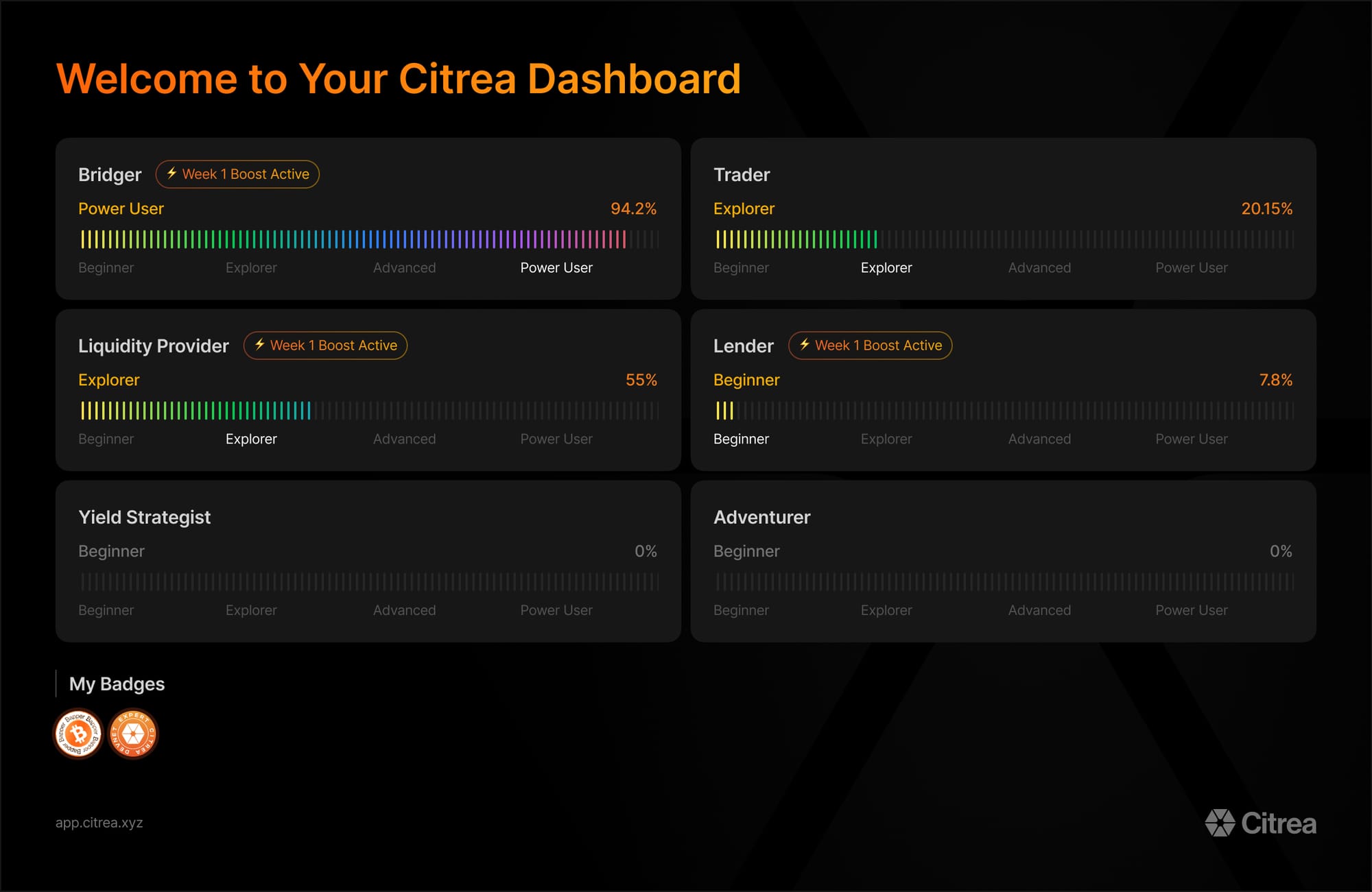 Citrea Mainnet is launching with a comprehensive dashboard, where users can explore the ecosystem and track their journey on Citrea across categories.